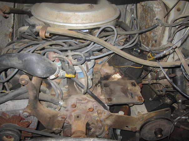 A look at the engine after removing the air conditioner compressor.