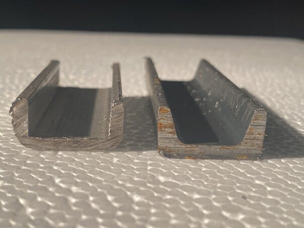 My local steel company sold C-Channels too, but unfortunately they were quite different from what I actually needed. If you look at the two of them side-by-side, you can see that one of them has angled edges. The reason for this is how they manufacturer them.