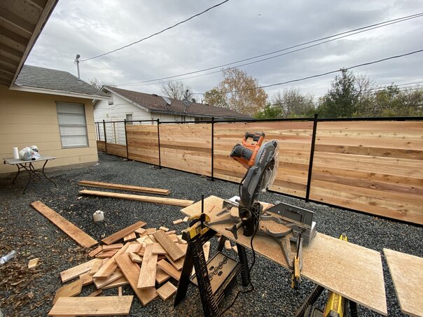 But that's basically it. Once all of the backing boards are in place, you can proceed with installing the cedar pickets as you normally would. Cut them to width and then screw them into the backing boards.