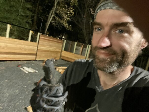Me, after getting the first few sections of fencing finished after weeks of hard work