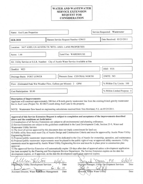 This probably doesn't sound that exciting to most people, but I'm happy to announce that we were approved for our water / wastewater extension today from the City of Austin. Basically this means that we'll be permitted to tap into the city's water and wastewater pipes for the property.