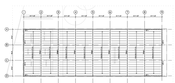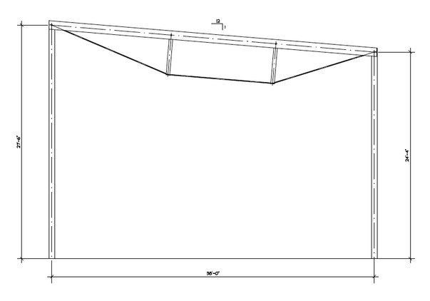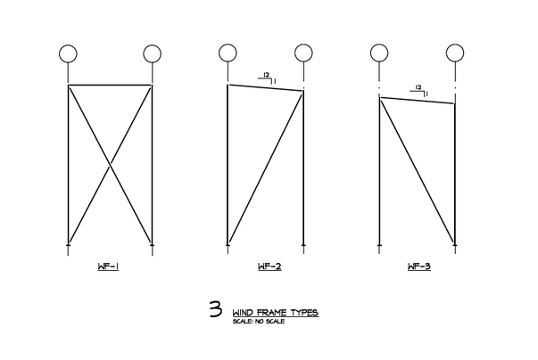 Although still very technical (as opposed to aesthetic) in nature, I was pretty excited to receive these structural truss CAD images from our structural engineer, Tsen Structural. The top left picture below shows the actual truss positions as they will sit over the foundation footprint. In all, there will be nine ( 9 ) 38? long inverted trusses to support the entire roof system. Between each of the trusses will be a system of steel cable wire purlins. The four corners of the building will also have cross bracing purlins.
