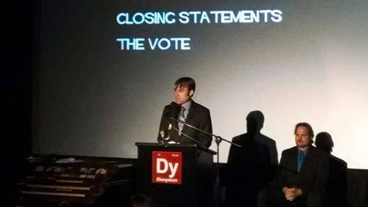 Kevin Ludlow presenting his closing arguments at the Dionysium Debate (photo credit: Jad Davis) Although not officially part of the campaign, the wonderful people at the Dionysium invited me to be one of the debaters for their September show. As one who loves formal debate and as one who loves the arts, I was thrilled to be a part of the show.