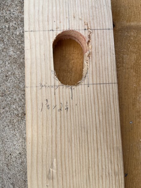 I tried cutting the door hole using a variety of methods on my drill press, but the bottom line is that it's just very difficult to use a boring bit for overlapping holes. Not to mention, you'd still need to trim the edges of the hole slightly to get the ovular shape.