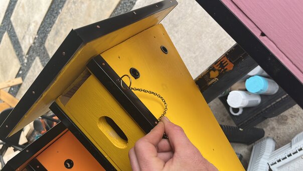 This part isn't entirely necessary, but given that the birdhouses should be cleaned at least once per year and the fact that the lynch pin is so small, it just seemed like a better way to ensure it doesn't get lost during cleaning.