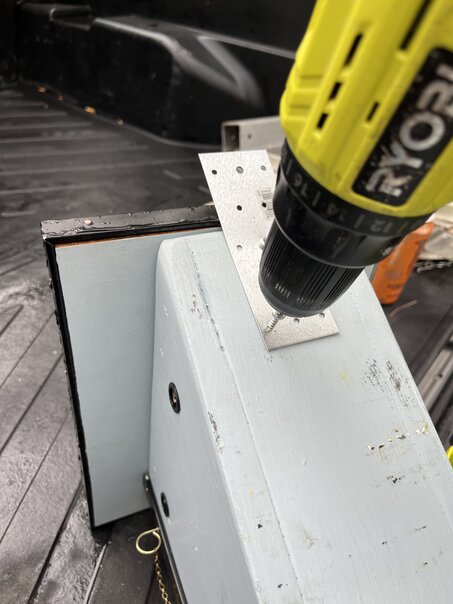 Flip the birdhouse over and place the tie plate at the very top so that just one row of holes is exposed above the birdhouse itself. Use a sufficient number of the Spax #8 3/4" construction screws to affix the tie plate to the back of the birdhouse. We'll use the center hole on the top row as a means to secure the top of the birdhouse to a tree. You can skip this step if you're planning to mount the birdhouse to a pole.