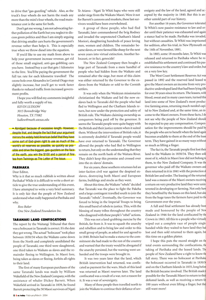 Now, you may immediately want to respond to the above claiming there was a lack of space. To save you the time, I do not believe so. The response printed after mine, 'Taranaki Land Confiscations', is two and a quarter columns long. My comments, including the paragraph you responded with, are still only one and one half columns long. This would normally bring us to the obvious notion that you felt more text from the latter response was important, but again, I beg to differ. It logically seems to me, given that I 'won' the contest for submitting the best piece, that the best piece would have priority over the others. Perhaps I am confusing my logic with another god-given rights of Americans to always be heard.