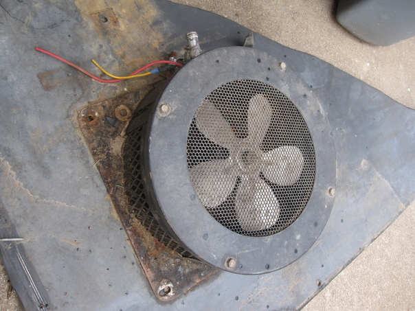 This was the fan in the center of the bus that I removed last week. Little did I know at the time that one of the hoses connected to it contained coolant. Fortunately the bus had been off.