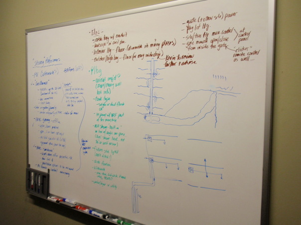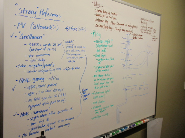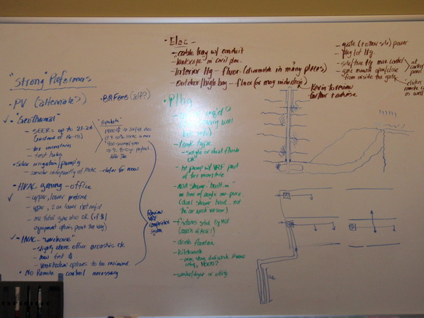 After going over the complexities and intended uses of the project as well as further expounding upon the MEP Narrative that I had put together, we spent a great deal of time detailing the desired mechanical systems for the warehouse. These included PV installations, geothermal connections, HVAC throughout the site, and what we could do (if anything) with the ground well on the property.