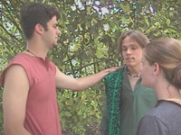 Running Time: 4 minutes 30 seconds Shoot Date: April 24-30, 1999 Release Date: May 4, 1999 Cast: Daniel Putt : Father, Klaus Wagner : Younger Son, Kevin Ludlow : Older Son, Kim Ludlow : Bendaw the Servant, Heather Kominczak : Passing Lady Specifications: Digital 8mm Genre: Biblical Notes: Experimental film piece shot with family and friends. A biblical piece with changed dialogue to fit the times. Depicted in pre-Judeo-Christian times. The only song used in the piece is my so called 'A Song'. (See: A Song)