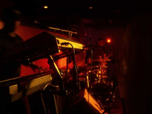 keyboard player setting up for a concert or playing at a concert