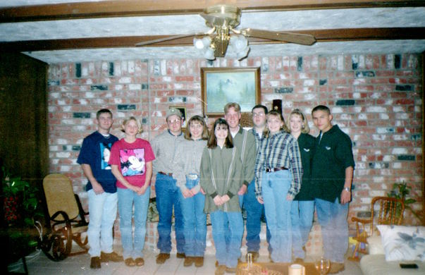 Posing for a family photo in front of the brick wall.