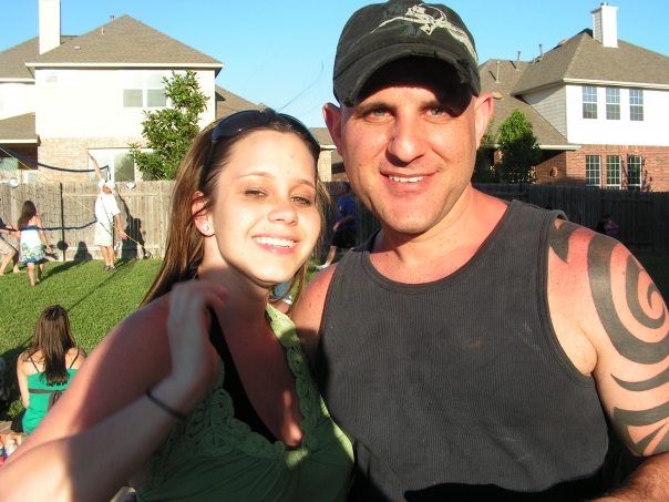 A very cute and attractive girl takes a picture with a man in the backyard.