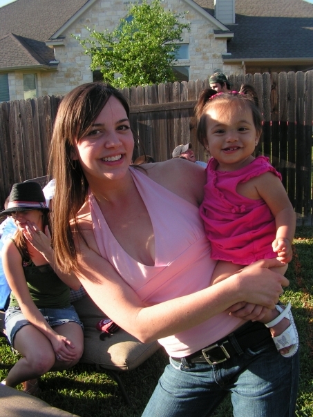 woman child party backyard mother daughter hat jeans