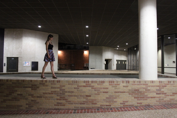 This picture appears to be a lady walking in from the building.