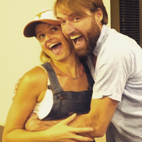 this couple are arm in arm hugged up together for this picture to be taken. A bearded man embracing a lady. He wears white shirt and brown haired. She wears a cap and in sleeveless dress. Both are laughing. A woman in a Texas Longhorns hat and overalls and a man with a thick brown beard looking very excited to be taking a fun picture together at a party. Baseball cap