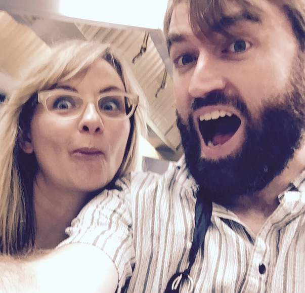 A charming Couple taking selfie. A white woman with blue eyes, blonde hair, and wearing retro glasses is making a funny face while taking a photo with a white man with shaggy brown hair and a full beard. Long haired blond woman wearing light colored plastic glasses, man with dark hair, beard and moustache, man's mouth open, striped shirt, loose tie A blonde haired woman in light colored glass and a blue eyed young man with a thick manly beard taking a silly picture together. A man with beard is shouting and a girl next to him wearing glasses is making funny faces by squeezing her lips The woman is making a long face and the man has his mouth wide open. He has a beard and it is blonde. The woman is wearing glasses. They both have blue eyes. A White brown hair teen girl wearing a specs and her colleague wearing a stripes shirt watching something and shocked while seeing that a man with beard and a woman with silver black hair and glasses are making fun or looking in happy mood. Surprised couple. Man is bearded. Lady wears wide specs. Man wears white shirt. The roof of the room is seen. A young blond white woman wearing glasses and a young white, brunette bearded man make silly faces while taking a selfie. A brunette man with a heavy beard is opening his mouth and showing his white teeth. A blonde woman with glasses with pink glasses makes a silly ace at the camera. Blue eyes