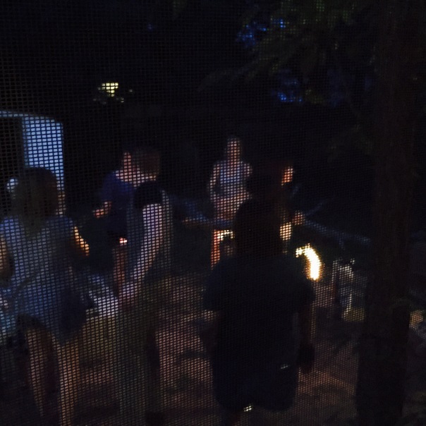 This was captured through a screen of people standing outside talking to each other.