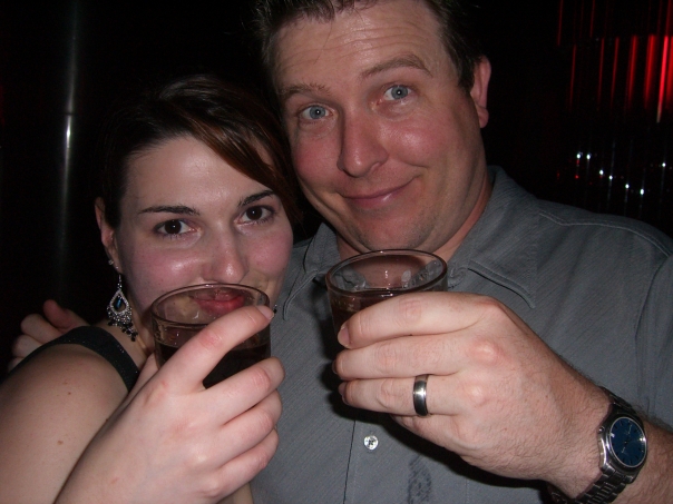 A couple celebrating at a very nice party and drinking very amazing drinks