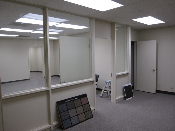 the big room, showing where different cubicles and compartments will be placed.