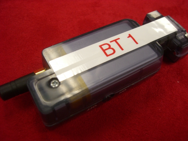 There is an electronic device with red and white numbers on it