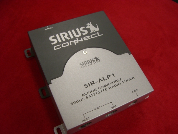 This is the Sirius Connect satellite radio tuner on top of a bright red background.