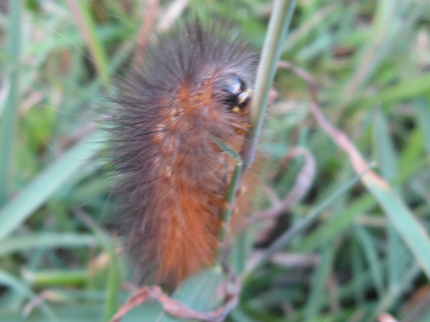 A fat hairy catepillar climbs up a plant which scared us as we did not see it.