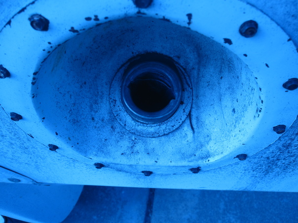 The blue paint was around the big hole in the busy main street.