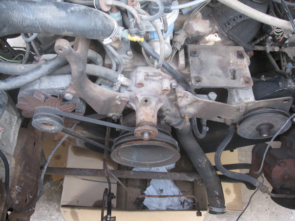An picture of an engine of a car that someone took out