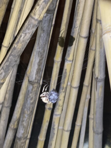 I had noticed a rather sizable that had made itself a giant web in the bamboo teepee I setup in my backyard.