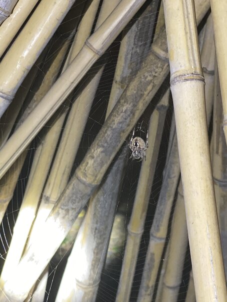 I had noticed a rather sizable that had made itself a giant web in the bamboo teepee I setup in my backyard.