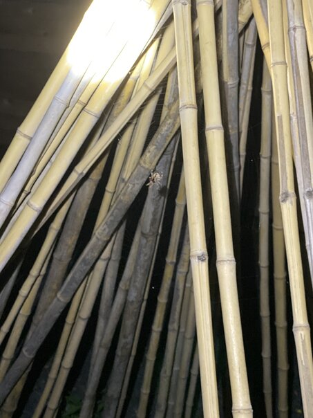 I had noticed a rather sizable that had made itself a giant web in the bamboo teepee I setup in my backyard.