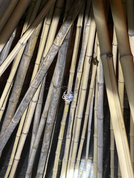 I had noticed a rather sizable that had made itself a giant web in the bamboo teepee I setup in my backyard.