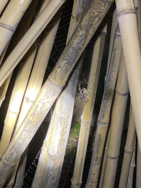 ![]() A Spider and a Wasp Austin, TX I had noticed a rather sizable that had made itself a giant web in the bamboo teepee I setup in my backyard. One night I came upon a giant wasp, managed to capture it, and as much as I'm terrified of spiders, I managed to feed it to the spider so it would grow healthy and strong. |