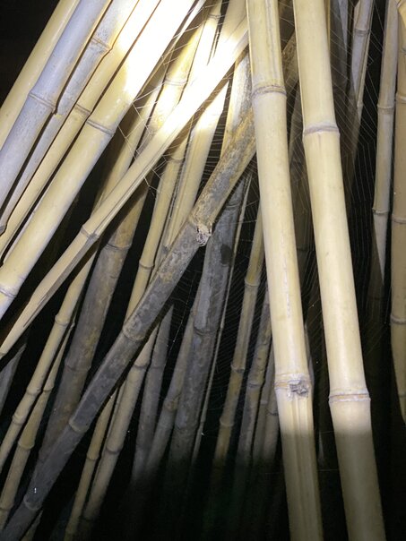 I had noticed a rather sizable that had made itself a giant web in the bamboo teepee I setup in my backyard.