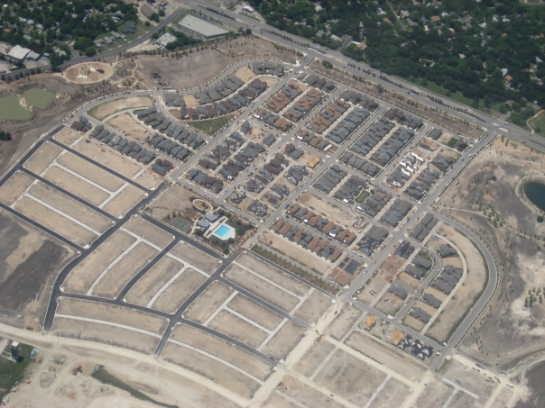 Eagle eye view of a small city under heavy construction. |
