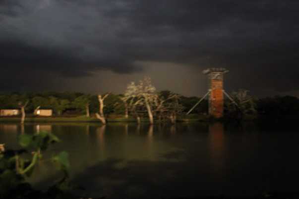 The sun came out over the dark and passing storm that flooded the village.