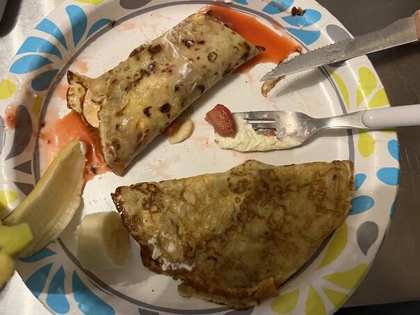 Of all of the meals that I made, I think making homemade crepes was probably my favorite. I didn't think I'd be able to make the crepes as thin as they needed to be, but following directions has a way of working and they were pretty delicious.
