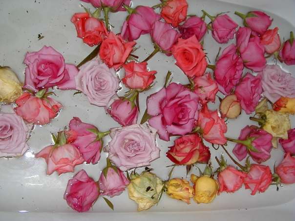 ![]() After Wedding Roses Austin, TX Seeing on how there were hundreds of roses left over from Sunni and Preston's wedding, I thought I would take some of them home just to brighten up my room a bit. I tried to keep them alive by creating a colorful bathtub setting but as one could probably have foretold, the roses quickly died and even more quickly began smelling up my room. |