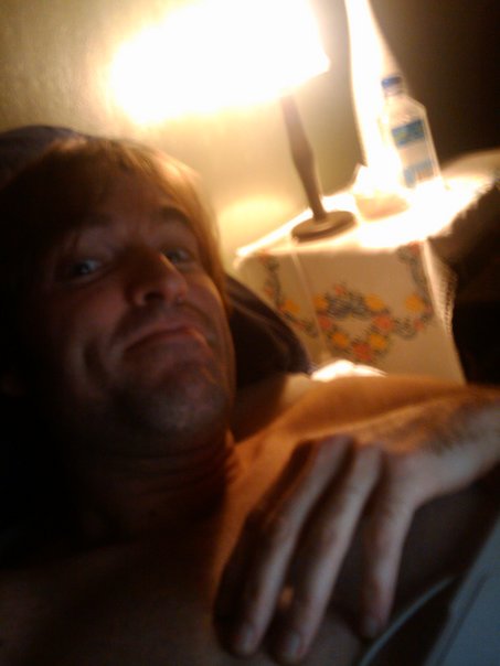it is a photo of a man laid down the bed