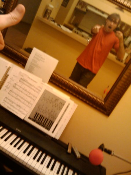 a man himself he is taken photograph in front of mirror and here is key board and note's is there.