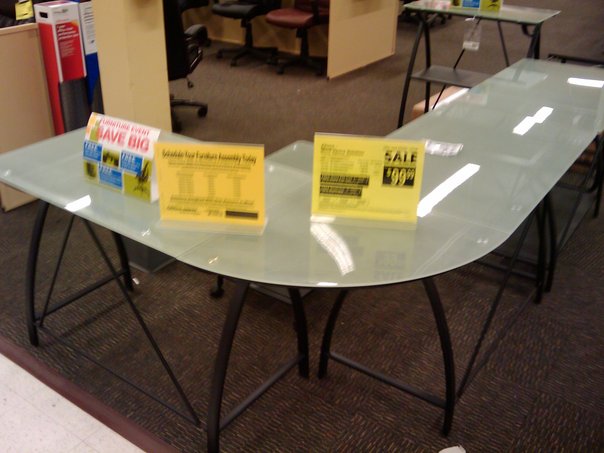 A SALE TABLE OF A OUTLET WITH ITS DESCRIBING NOTES AND BROCHURES TO GET THE CUSTOMERS ATTRACTED TOWARDS THEM.