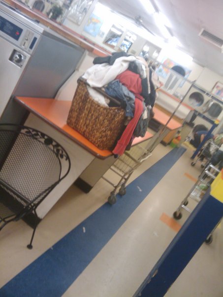 A heap of dirty clothes anxiously waiting for the turn to be washed in a large wash-room.