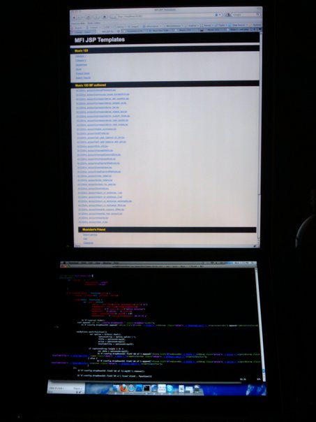 giving some demo with the help of projectors one lap top and a screen is there but both or different.