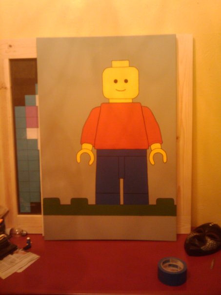 A wall picture of box headed man having magnet shaped hands is arranged and fixed in the house