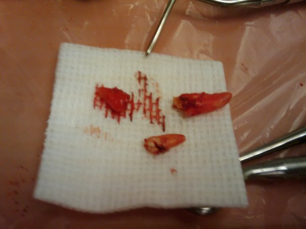 "The flesh pieces on the piece of white cloth feels like not to see it."