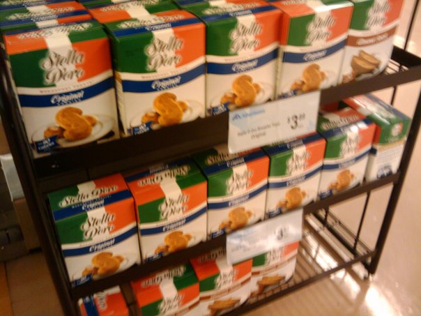 A box of Italian style food in a grocery store.