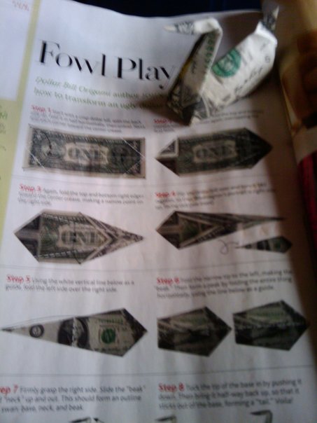 The person in this image is making a swan out of money.