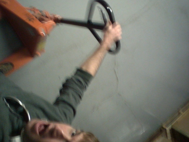 The man held his mouth open as he grabbed the handle |