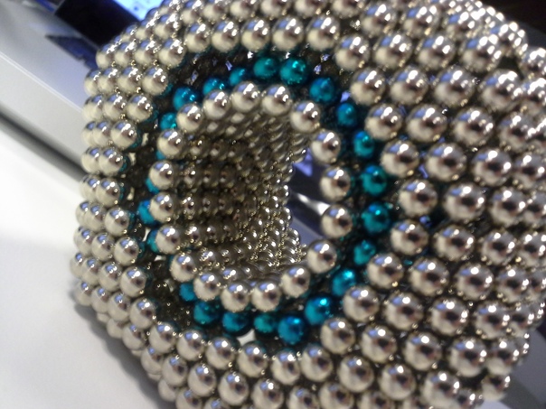 Beading on this work is artfully arranged into a beautiful, colorful, shiny design. |